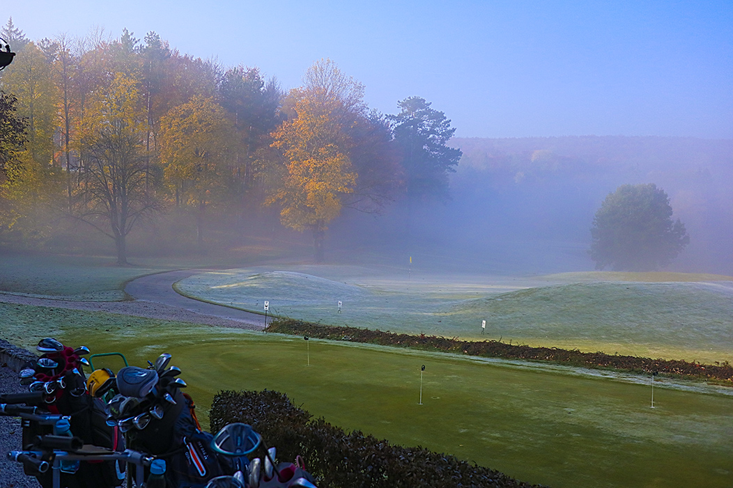 KW 43/21: Morgennebel über Loch 18 in Enzesfeld.